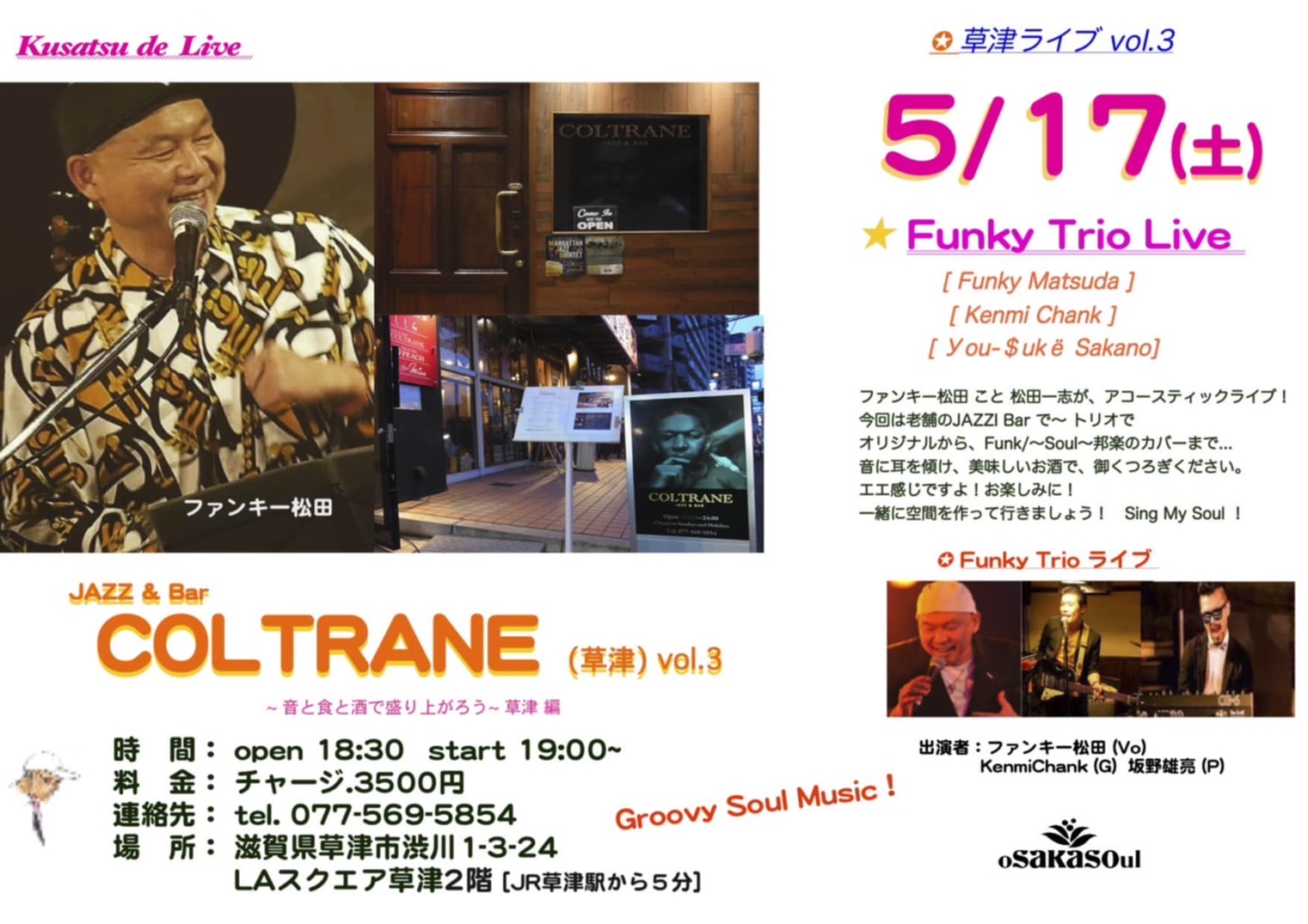 2025年5月のライブ一覧 2025.5.15 (木) 生島佳明(Gt)全国ソロライブツアー! Time:1 st 19:30~20:15 2st 20:30~21:15 Charge:2,500 + 2 order 東京及び海外で活躍するギタリスト生島佳明が、3rd soloアルバムリリース記念に全国47都道府県を周るツアーを決行! 近年はインドへ頻繫に通い、インド古典音楽の要素を取り込み独自のJazzミュージックを構築!楽しみなLIVEになりそう! → 詳細情報を見る 2025.5.17 (土) ファンキー松田(Vo)坂野雄亮(Pf)Kenmi Chank(Gt) Time:1st 19:00~19:45 2st 20:00~20:45 Charge:3,500 + 2 order → 詳細情報を見る 2025.5.24 (土) 関谷友加里(Pf)大塚恵(Ba) Time:1st 19:30~20:15 2st 20:30~21:15 Charge:2,500 +2 order 19:00開場 19:30スタートとなります。 → 詳細情報を見る 2025.5.27 (火) 市川芳枝(Vo)仲野肇(Gt) Time:1st 20:00~20:45 2st 21:00~21:45 Charge:3,000 + 2 order → 詳細情報を見る 2025.5.30 (金) 西村有香里(Ts)横尾昌二郎(Tp)加納新吾(Pf)米澤毅風(Ba)坪田英徳(Ds) Time:1 st 19:30-20:15 2 st 20:30-21:15 Charge:3,500 + 2 order → 詳細情報を見る 2025年5月 月 火 水 木 金 土 日 « 4月 6月 » 1234 567891011 12131415161718 19202122232425 262728293031 月を選択 2026年3月 (7) 2026年2月 (7) 2026年1月 (7) 2025年12月 (8) 2025年11月 (7) 2025年10月 (6) 2025年9月 (6) 2025年8月 (6) 2025年7月 (6) 2025年6月 (6) 2025年5月 (5) 2025年4月 (6) 2025年3月 (3) 2025年2月 (5) 2025年1月 (5) 2024年12月 (5) 2024年11月 (4) 2024年10月 (8) 2024年9月 (5) 2024年8月 (5) 2024年7月 (4) 2024年6月 (4) 2024年5月 (4) 2024年4月 (2) 2024年3月 (3) 2024年2月 (4) 2024年1月 (7) 2023年12月 (5) 2023年11月 (6) 2023年10月 (4) 2023年9月 (4) 2023年8月 (2) 2023年6月 (1) 2023年5月 (3) 2023年4月 (3) 2023年3月 (2) 2023年2月 (1) 2023年1月 (2) 2022年12月 (5) 2022年11月 (4) 2022年10月 (2) 2022年9月 (3) 2022年8月 (1) 2022年7月 (2) 2022年6月 (5) 2022年5月 (1) 2022年4月 (3) 2022年3月 (2) 2022年2月 (1) 2022年1月 (1) 2021年12月 (5) 2021年11月 (6) 2021年10月 (6) 2021年9月 (5) 2021年8月 (6) 2021年7月 (6) 2021年6月 (6) 2021年5月 (5) 2021年4月 (7) 2021年3月 (7) 2021年2月 (7) 2021年1月 (4) 2020年12月 (8) 2020年11月 (7) 2020年10月 (6) 2020年9月 (6) 2020年8月 (8) 2020年7月 (6) 2020年4月 (7) 2020年3月 (6) 2020年2月 (8) 2020年1月 (4) 2019年12月 (6) 2019年11月 (6) 2019年10月 (7) 2019年9月 (6) 2019年8月 (7) 2019年7月 (4) 2019年6月 (8) 2019年5月 (6) 2019年4月 (5) 2019年3月 (7) 2019年2月 (8) 2019年1月 (4) 2018年12月 (7) 2018年11月 (8) 2018年10月 (9) 2018年9月 (7) 2018年8月 (7) 2018年7月 (6) 2018年6月 (5) 2018年5月 (6) 2018年4月 (7) 2018年3月 (8) 2018年2月 (6) 2018年1月 (4) 2017年12月 (7) 2017年11月 (5) 2017年10月 (6) 2017年9月 (7) 2017年8月 (5) 2017年7月 (6) 2017年6月 (7) 2017年5月 (7) 2017年4月 (6) 2017年3月 (7) 2017年2月 (5) 2017年1月 (7) 2016年12月 (6) 2016年11月 (7) 2016年10月 (6) 2016年9月 (5) 2016年8月 (6) 2016年7月 (7) 2016年6月 (6) 2016年5月 (6) 2016年4月 (6) 2016年3月 (6) 2016年2月 (7) 2016年1月 (6) 2015年12月 (7) 2015年11月 (5) 2015年10月 (5) 2015年9月 (6) 2015年8月 (6) 2015年7月 (7) 2015年6月 (6) 2015年5月 (5) 2015年4月 (7) 2015年3月 (6) 2015年2月 (6) 2015年1月 (4) 2014年12月 (6) 2014年11月 (6) 2014年10月 (6) 2014年9月 (5) 2014年8月 (6) 2014年7月 (7) 2014年6月 (5) 2014年5月 (6) 2014年4月 (4) 2014年3月 (6) 2014年2月 (4)