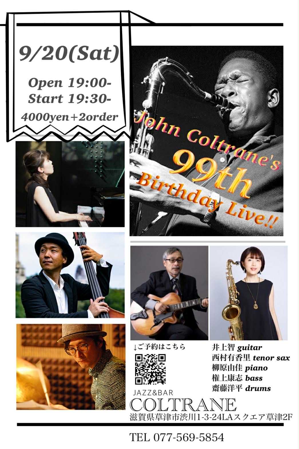 素晴らしいミュージシャンと共にコルトレーンの生誕をお祝いしましょう!