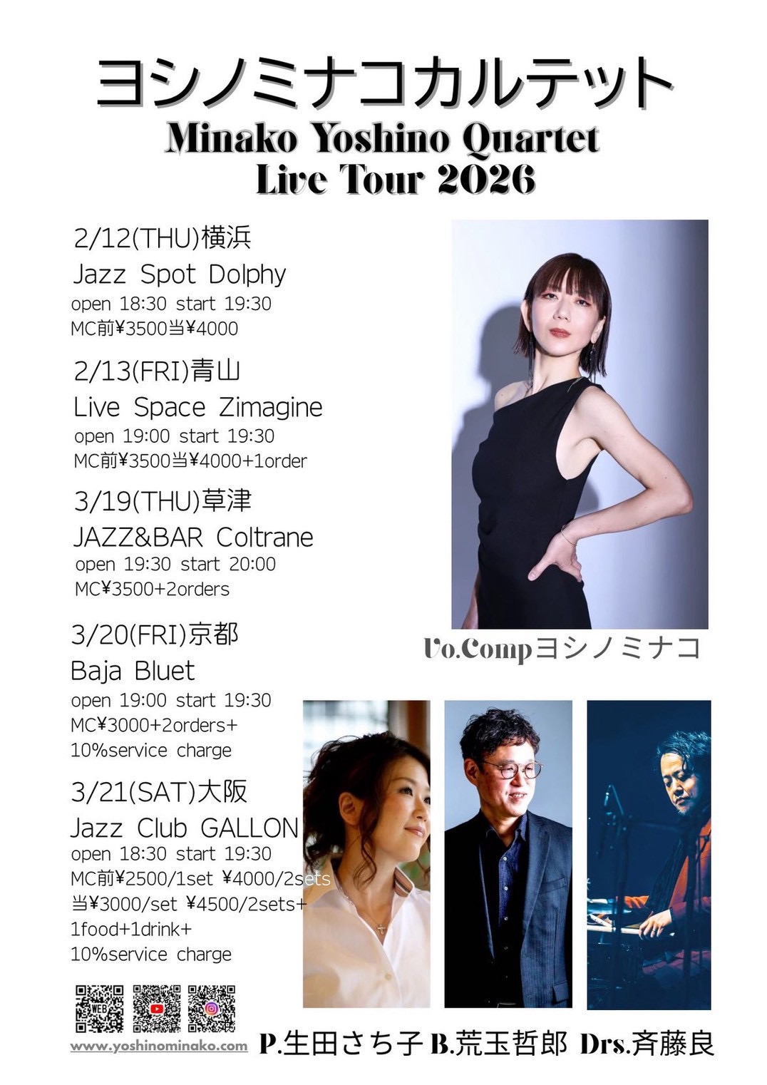 ヨシノ ミナコ(Vo)生田さち子(Pf)荒玉哲郎(Ba)斉藤良(Dr)
