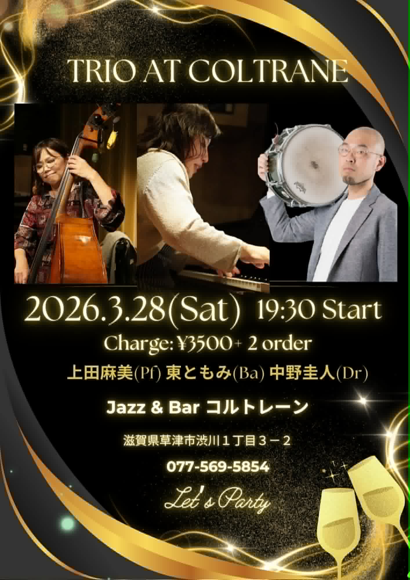2026年3月のライブ一覧 2026.3.11 (水) 朝田拓馬(Gt)宮地遼(Ba) Time:open 18:30 1st 19:30~20:15 2st 20:30~21:15 Charge:3,500 + 2 order → 詳細情報を見る 2026.3.13 (金) 「E.D.F.」清水武志(Pf)田中洋一(Tp)武井努(TSax)西川サトシ(Ba)光田臣(Ds) Time:1st 19:30~20:15 2st 20:30~21:15 Charge:3,500 +2 order → 詳細情報を見る 2026.3.19 (木) ヨシノ ミナコ(Vo)生田さち子(Pf)荒玉哲郎(Ba)斉藤良(Dr) Time:1st 20:00~20:45 2st 21:00~21:45 Charge:3,500 + 2 order → 詳細情報を見る 2026.3.21 (土) 第23回COLTRANE ジャムセッション開催と出演者募集のご案内 Time: 19:30~22:00 Charge:2,000 + 2 order ベースの方大いに歓迎です! → 詳細情報を見る 2026.3.25 (水) 平野翔子(Vo)井野アキヲ(Gt) Time:1st 19:30~20:15 2st 20:30~21:15 Charge:2,500 +2 order → 詳細情報を見る 2026.3.28 (土) 「TRIO AT COLTRANE」上田麻美(Pf)東ともみ(Ba)中野圭人(Dr) Time:1st 19:30~20:15 2st 20:30~21:15 Charge:3,500 + 2 order → 詳細情報を見る 2026年3月 月 火 水 木 金 土 日 « 2月 1 2345678 9101112131415 16171819202122 23242526272829 3031 月を選択 2026年3月 (6) 2026年2月 (6) 2026年1月 (8) 2025年12月 (8) 2025年11月 (7) 2025年10月 (7) 2025年9月 (6) 2025年8月 (6) 2025年7月 (6) 2025年6月 (6) 2025年5月 (5) 2025年4月 (6) 2025年3月 (3) 2025年2月 (5) 2025年1月 (5) 2024年12月 (5) 2024年11月 (4) 2024年10月 (8) 2024年9月 (5) 2024年8月 (5) 2024年7月 (4) 2024年6月 (4) 2024年5月 (4) 2024年4月 (2) 2024年3月 (3) 2024年2月 (4) 2024年1月 (7) 2023年12月 (5) 2023年11月 (6) 2023年10月 (4) 2023年9月 (4) 2023年8月 (2) 2023年6月 (1) 2023年5月 (3) 2023年4月 (3) 2023年3月 (2) 2023年2月 (1) 2023年1月 (2) 2022年12月 (5) 2022年11月 (4) 2022年10月 (2) 2022年9月 (3) 2022年8月 (1) 2022年7月 (2) 2022年6月 (5) 2022年5月 (1) 2022年4月 (3) 2022年3月 (2) 2022年2月 (1) 2022年1月 (1) 2021年12月 (5) 2021年11月 (6) 2021年10月 (6) 2021年9月 (5) 2021年8月 (6) 2021年7月 (6) 2021年6月 (6) 2021年5月 (5) 2021年4月 (7) 2021年3月 (7) 2021年2月 (7) 2021年1月 (4) 2020年12月 (8) 2020年11月 (7) 2020年10月 (6) 2020年9月 (6) 2020年8月 (8) 2020年7月 (6) 2020年4月 (7) 2020年3月 (6) 2020年2月 (8) 2020年1月 (4) 2019年12月 (6) 2019年11月 (6) 2019年10月 (7) 2019年9月 (6) 2019年8月 (7) 2019年7月 (4) 2019年6月 (8) 2019年5月 (6) 2019年4月 (5) 2019年3月 (7) 2019年2月 (8) 2019年1月 (4) 2018年12月 (7) 2018年11月 (8) 2018年10月 (9) 2018年9月 (7) 2018年8月 (7) 2018年7月 (6) 2018年6月 (5) 2018年5月 (6) 2018年4月 (7) 2018年3月 (8) 2018年2月 (6) 2018年1月 (4) 2017年12月 (7) 2017年11月 (5) 2017年10月 (6) 2017年9月 (7) 2017年8月 (5) 2017年7月 (6) 2017年6月 (7) 2017年5月 (7) 2017年4月 (6) 2017年3月 (7) 2017年2月 (5) 2017年1月 (7) 2016年12月 (6) 2016年11月 (7) 2016年10月 (6) 2016年9月 (5) 2016年8月 (6) 2016年7月 (7) 2016年6月 (6) 2016年5月 (6) 2016年4月 (6) 2016年3月 (6) 2016年2月 (7) 2016年1月 (6) 2015年12月 (7) 2015年11月 (5) 2015年10月 (5) 2015年9月 (6) 2015年8月 (6) 2015年7月 (7) 2015年6月 (6) 2015年5月 (5) 2015年4月 (7) 2015年3月 (6) 2015年2月 (6) 2015年1月 (4) 2014年12月 (6) 2014年11月 (6) 2014年10月 (6) 2014年9月 (5) 2014年8月 (6) 2014年7月 (7) 2014年6月 (5) 2014年5月 (6) 2014年4月 (4) 2014年3月 (6) 2014年2月 (4)